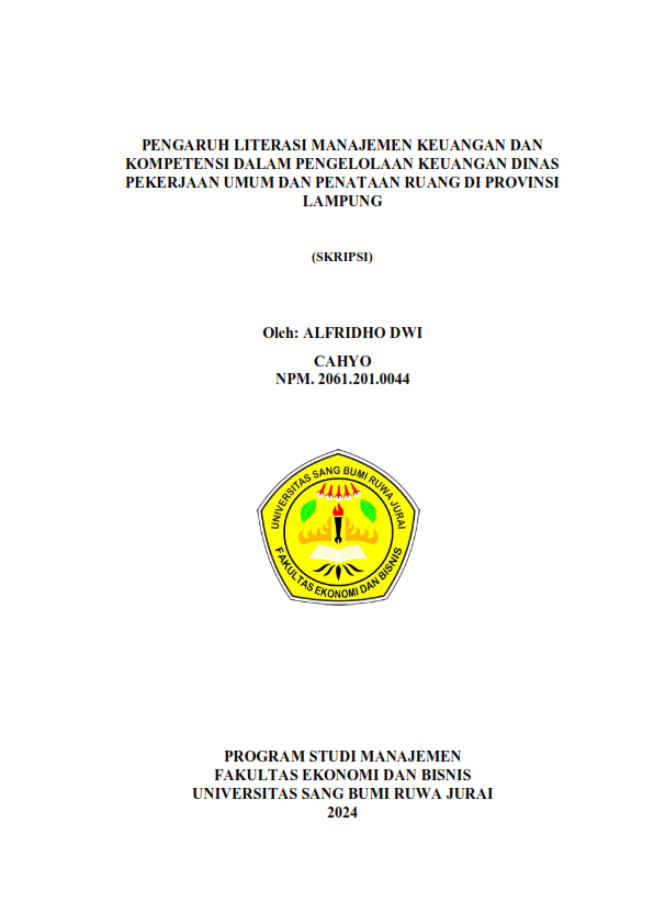 Untuk melaksanakan tugasnya, Dinas Pekerjaan Umum dan Penataan Ruang (PUPR) Propinsi Lampung memiliki tanggung jawab untuk mengelola anggaran dan melaksanakan pembangunan di bidang infrastruktur. Karena kompleksitas tugasnya, PUPR memiliki 9 bendahara dan 1 Kuasa Pengguna Anggaran.Data primer dan sekunder digunakan dalam penelitian penulis. Data primer berasal dari kuisioner dan wawancara langsung dengan responden. Data sekunder berasal dari dokumen dari Dinas Pekerjaan umum dan Ciptakarya Provinsi Lampung, Dinas PUPR Kabupaten Lampung Timur, dan Dinas PUPR Kabupaten Lampung Barat. Penelitian ini melibatkan 30 responden yang melibatkan bendahara dan kuasa pengguna anggaran dengan menggunakan metode analisis kuantitatif regresi linear berganda. Dan hasil dari penelitian ini bahwasannya variabel (X1) literasi keuangan berpengaruh secara signifikan terhadap variabel (Y) pengelolaan keuangan, variabel (X2) kompetensi berpengaruh terhadap variabel (Y)pengelolaan keuangan dan diuji secara bersama sama (X1) literasi keuangan dan (X2) kompetensi berpengaruh signifikan terhadap (Y) pengelolaan keuangan.